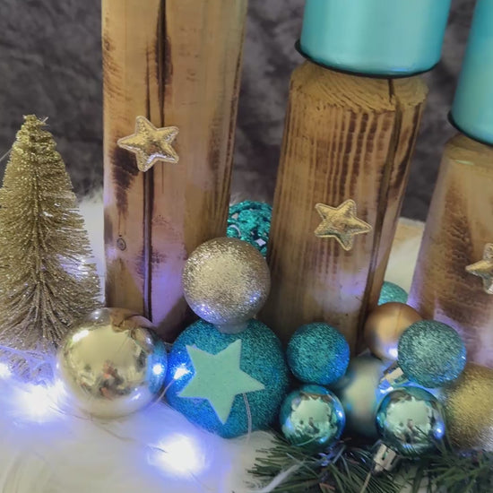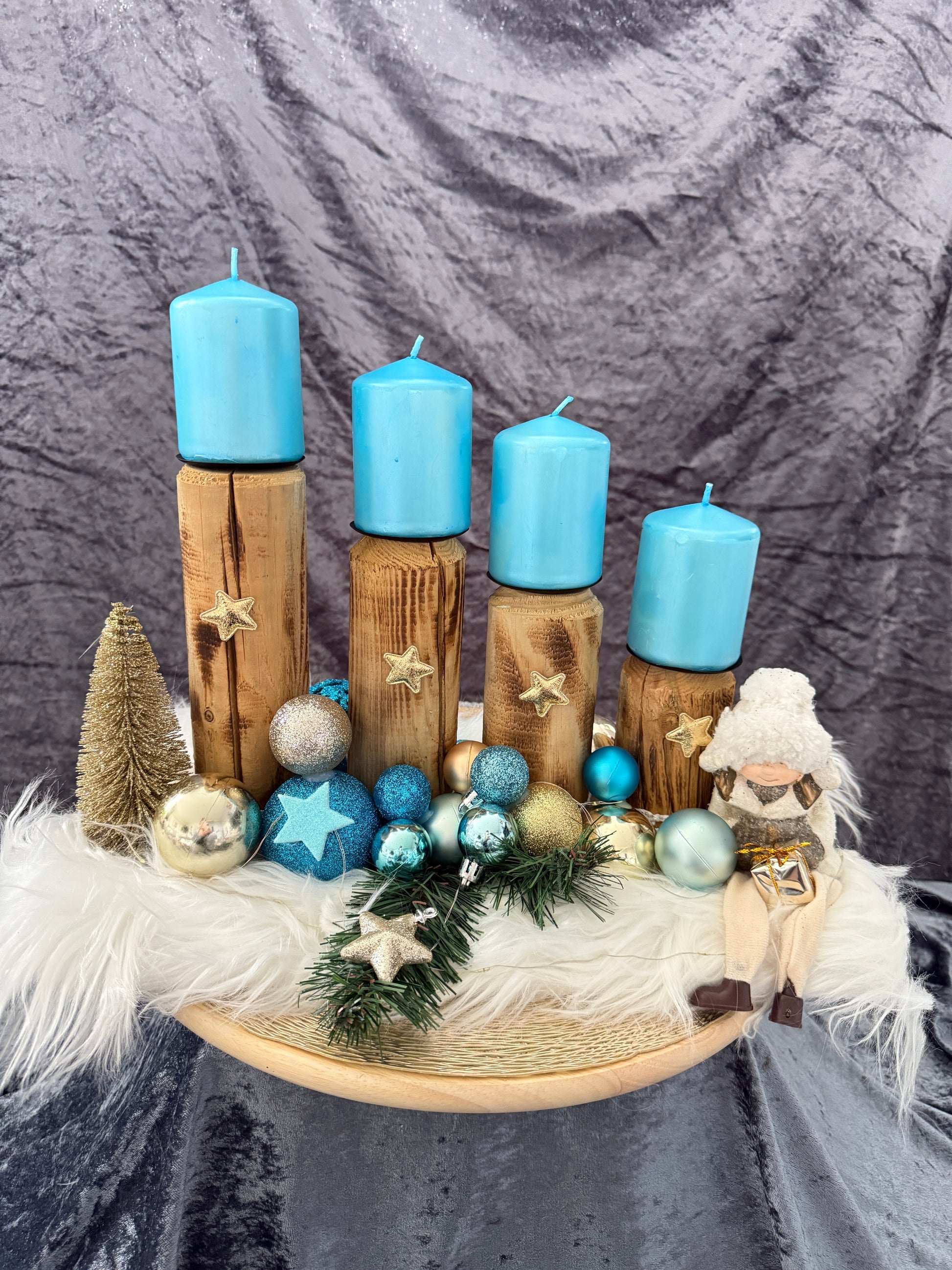 Dieses liebevoll gestaltete Adventsgesteck aus Holz & Kunststoff misst ca .40 cm  und ist aus hochwertigen, künstlichen Materialien hergestellt, was es zu einem langlebigen und pflegeleichten Begleiter in der Weihnachtszeit macht und jedes Jahr wieder verwendet werden kann.