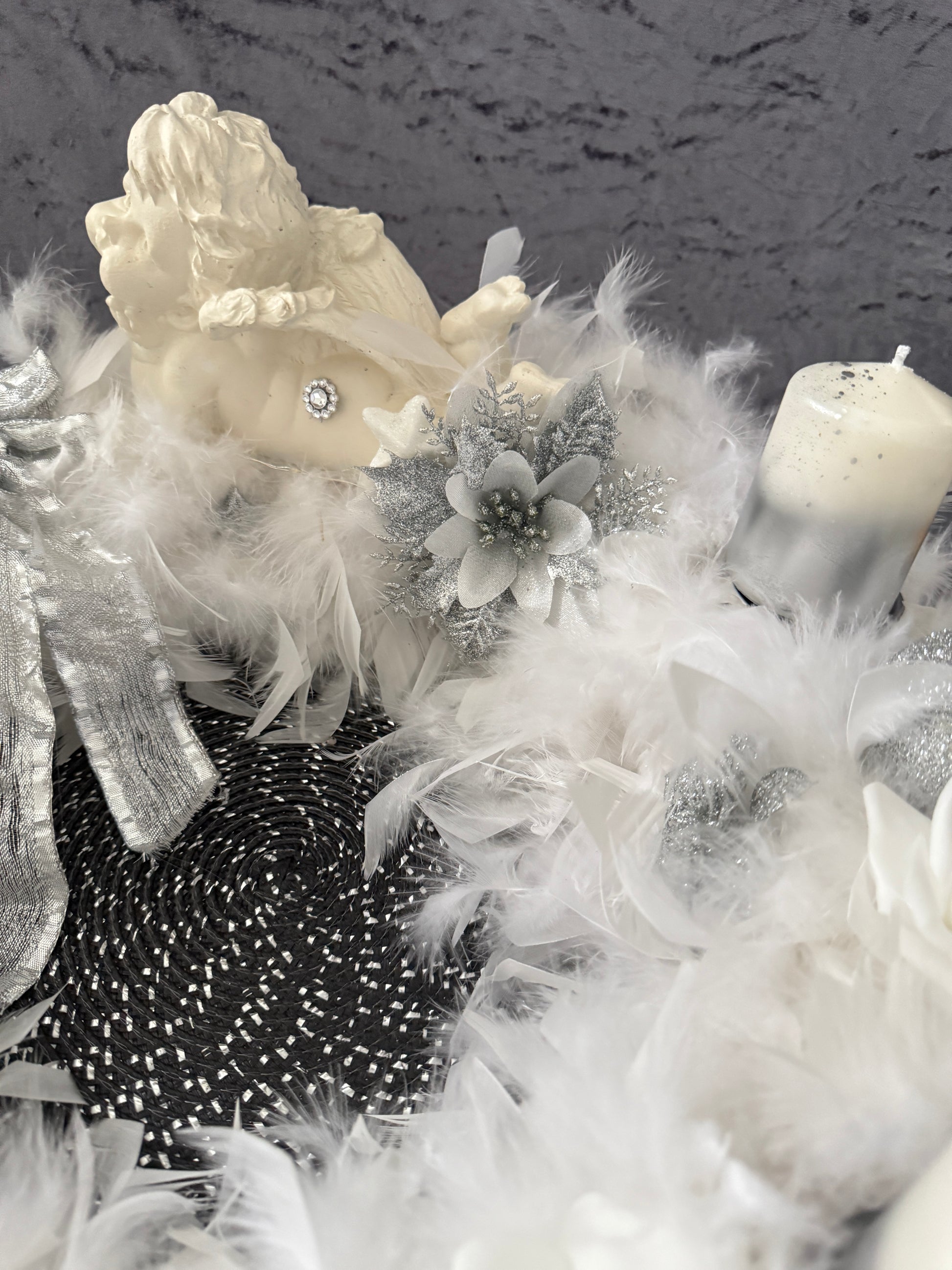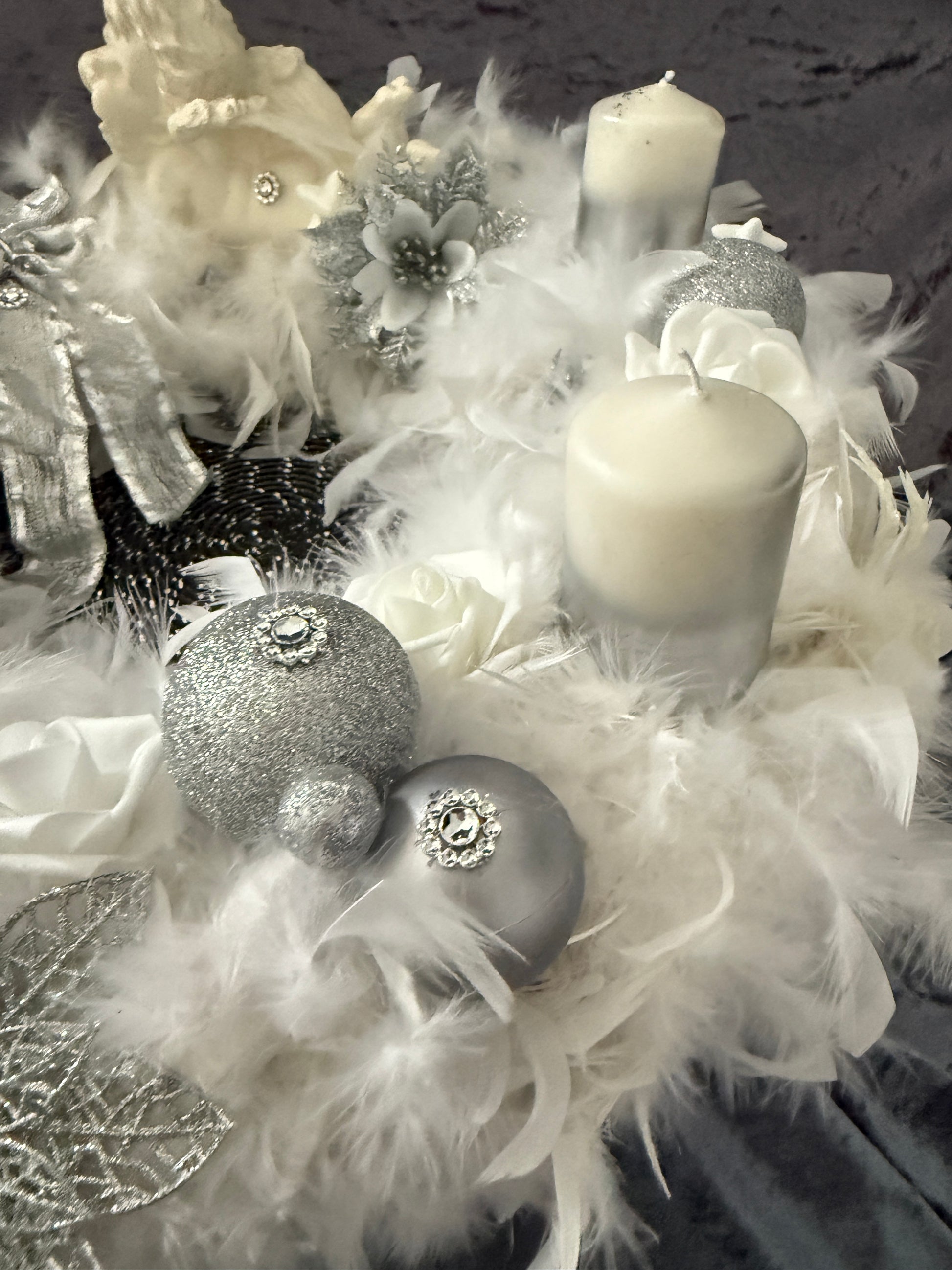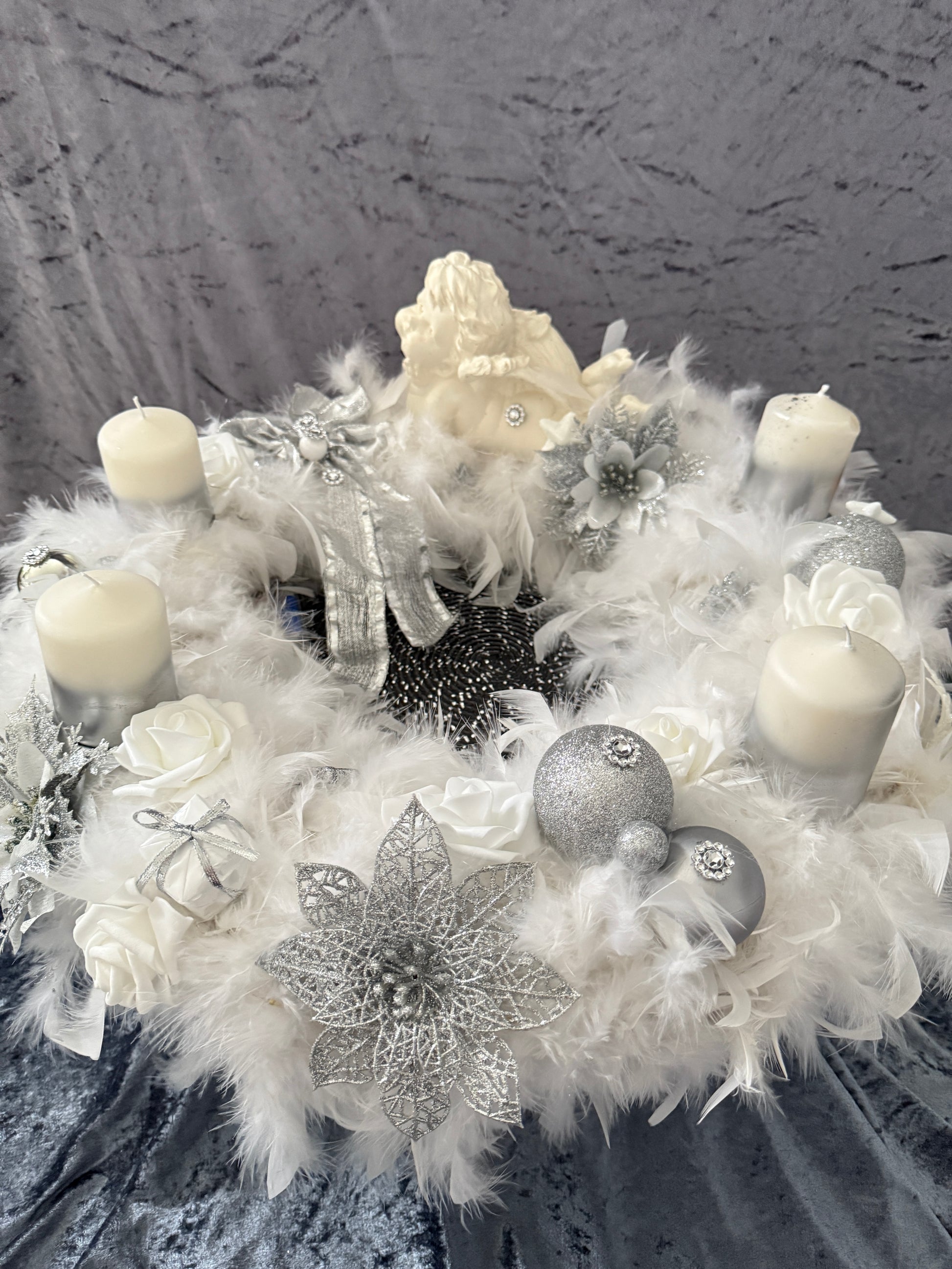 XXL Adventskranz Federkranz 65 cm weiß silber
