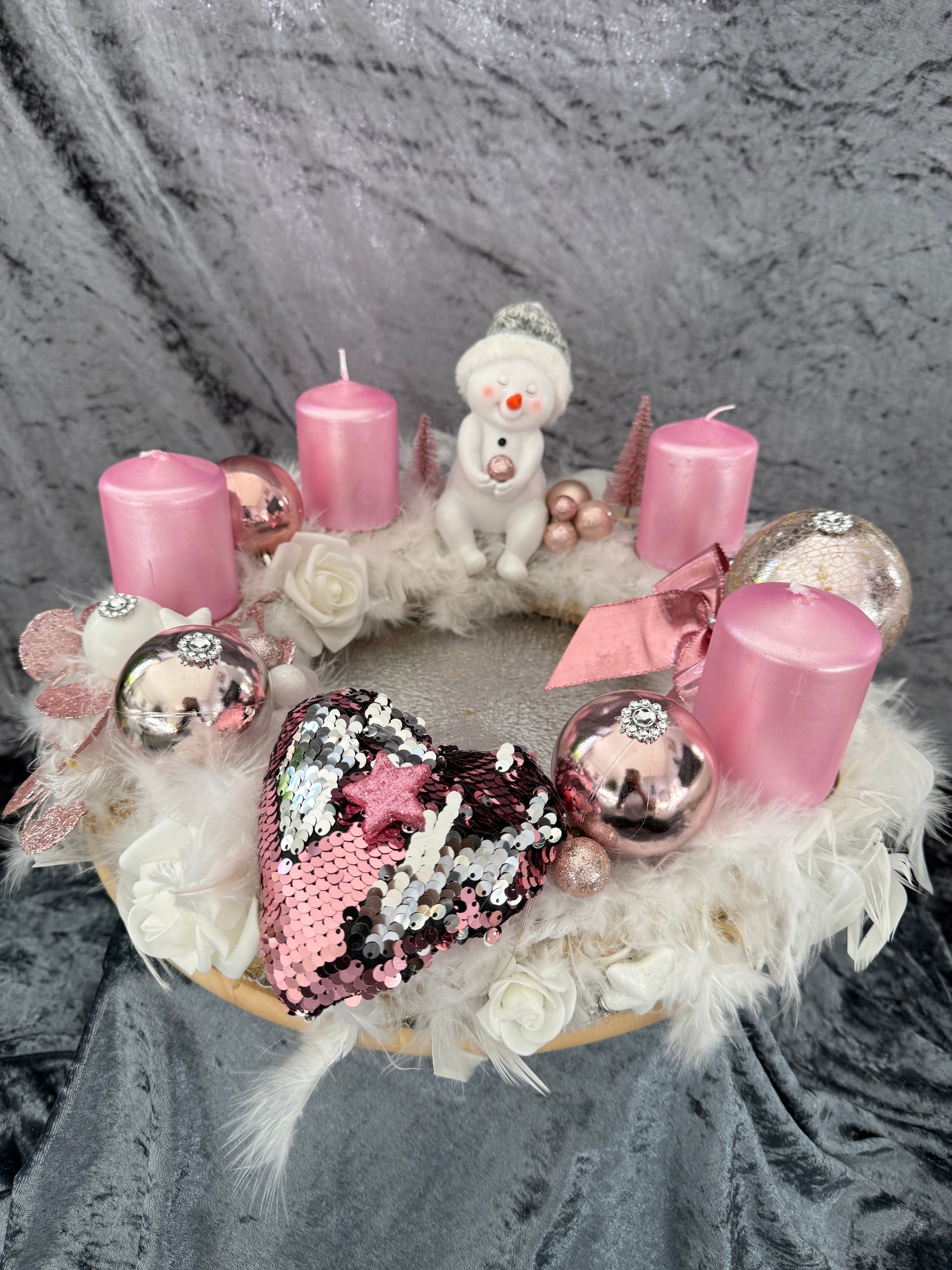 Adventskranz Federkranz weiß rosa