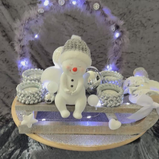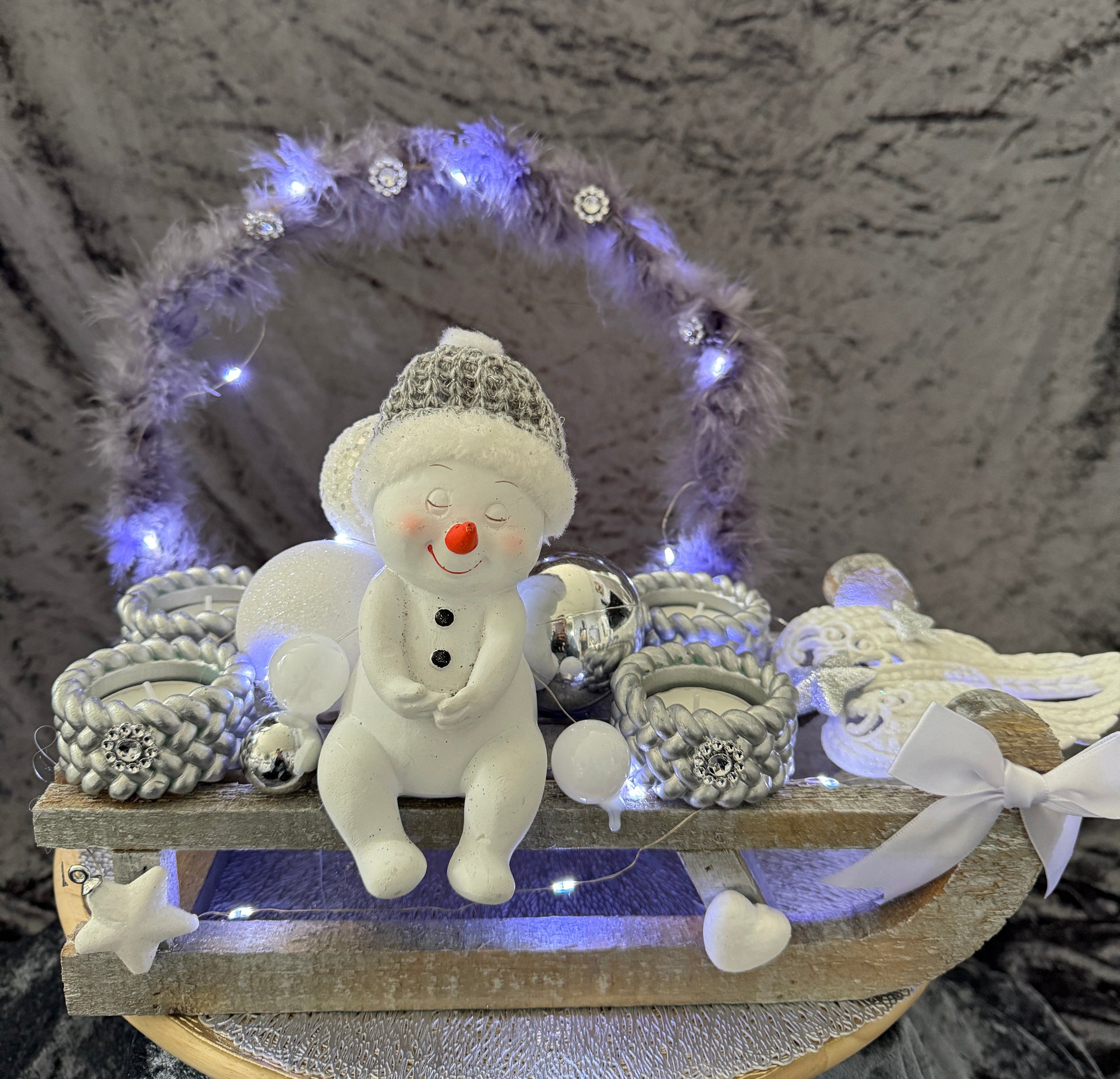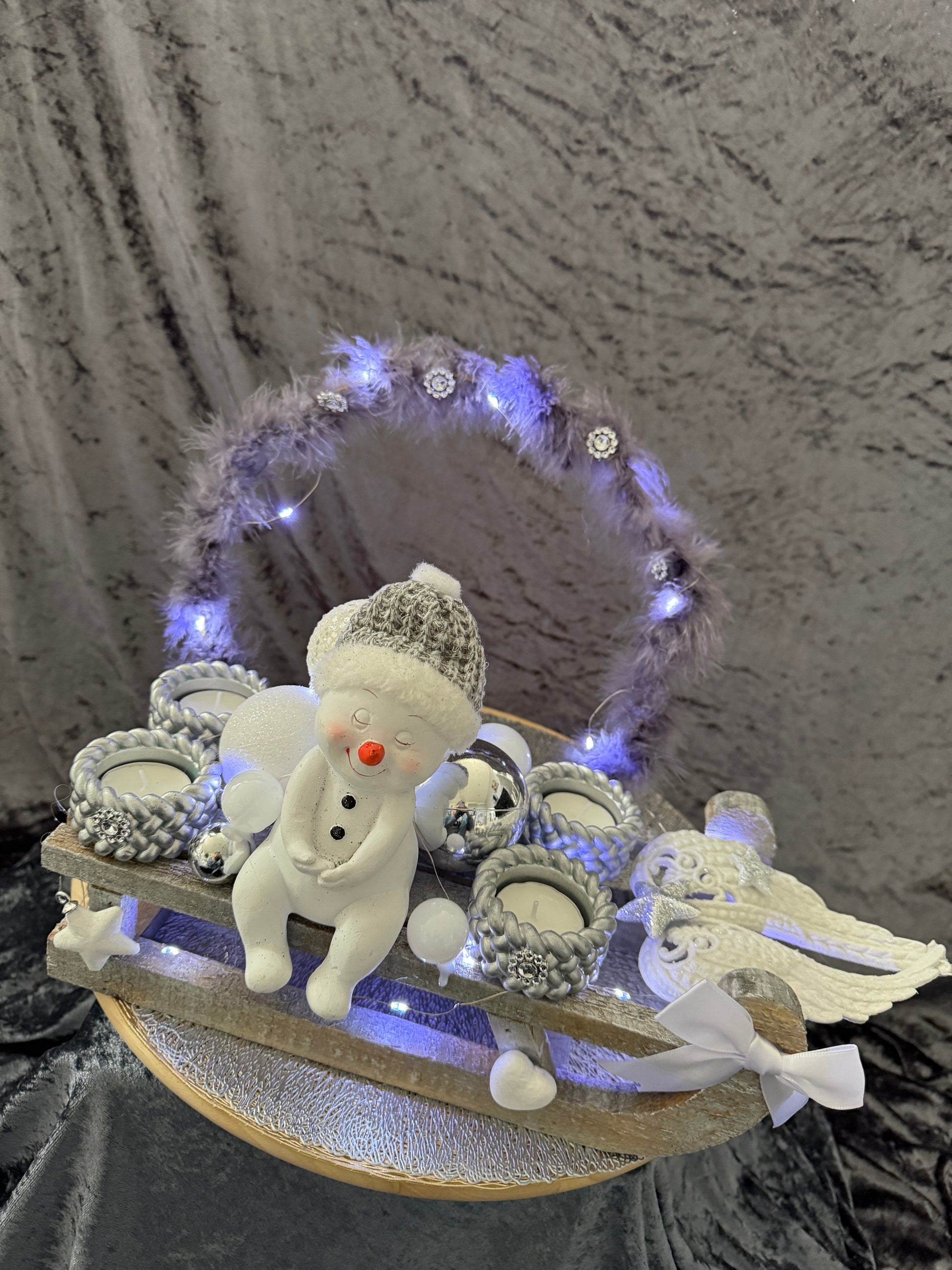 Adventskranz Schlitten silber weiß