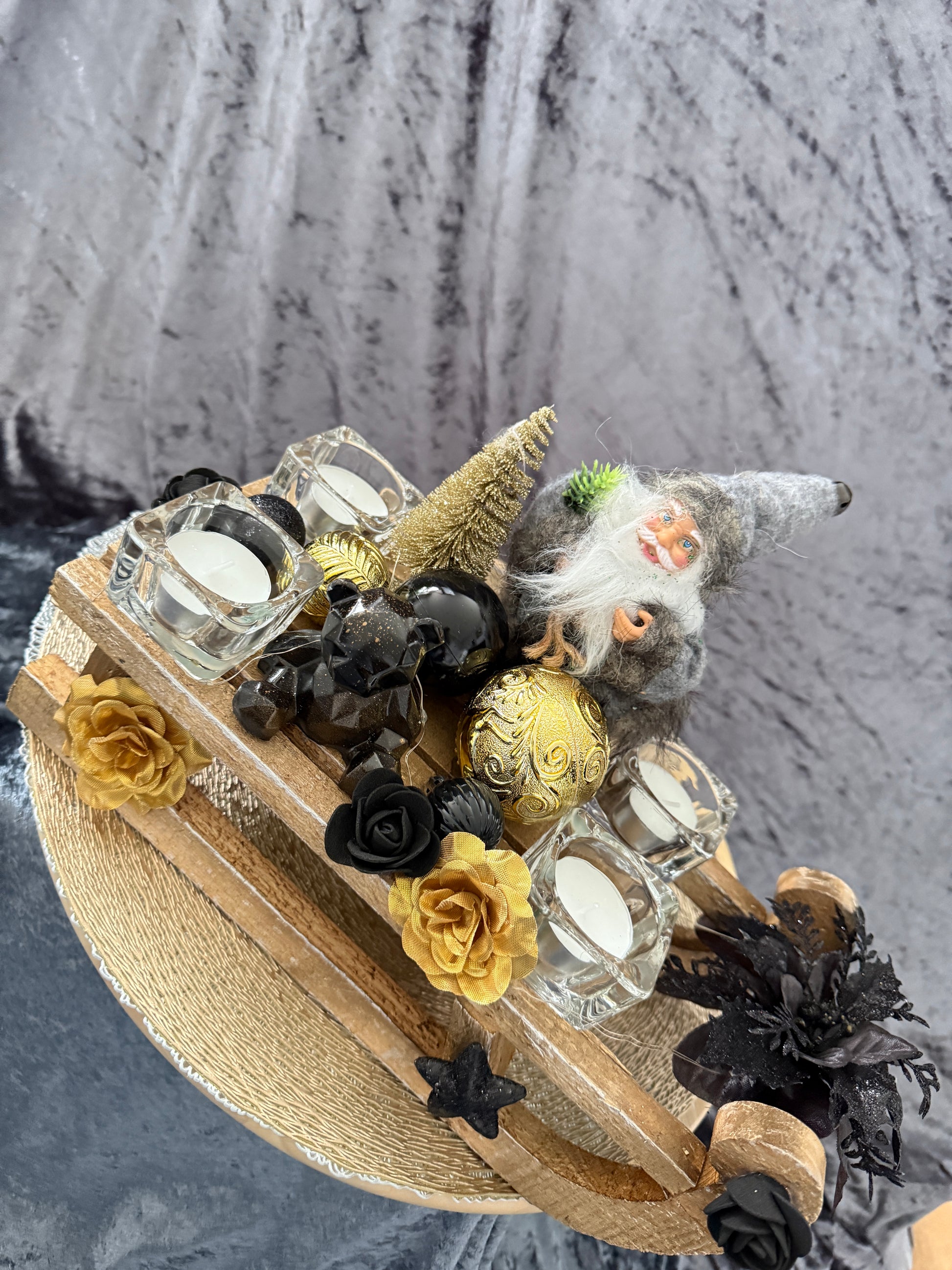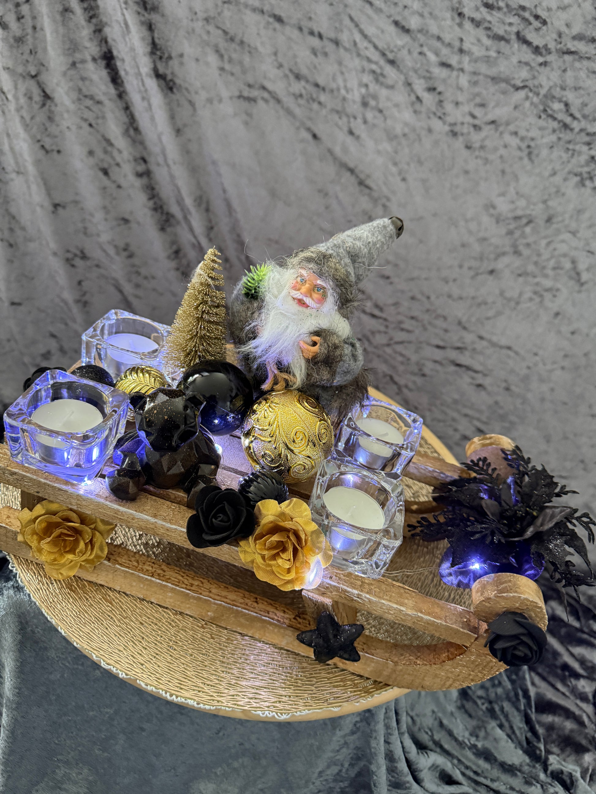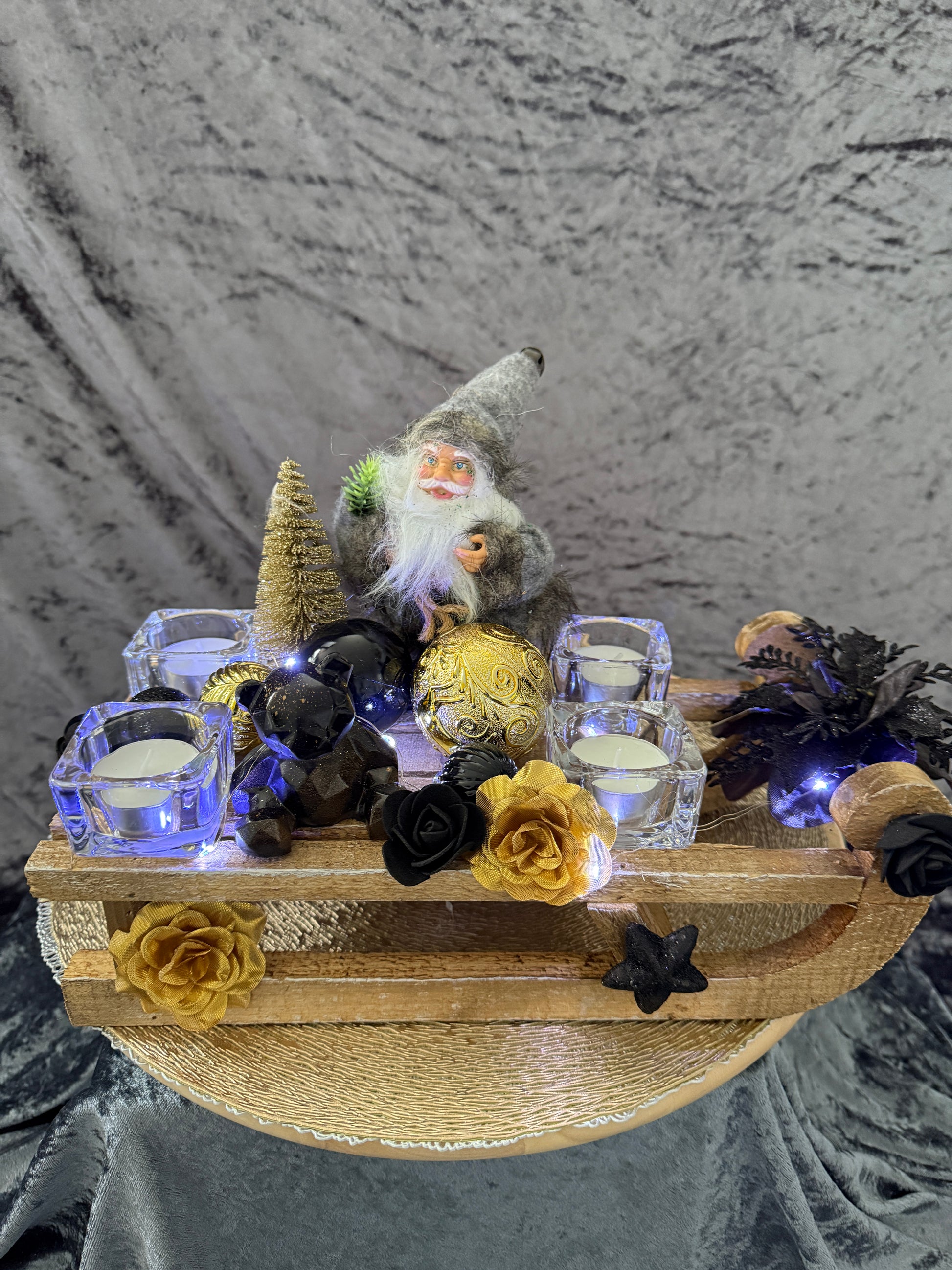 Adventskranz Schlitten gold schwarz