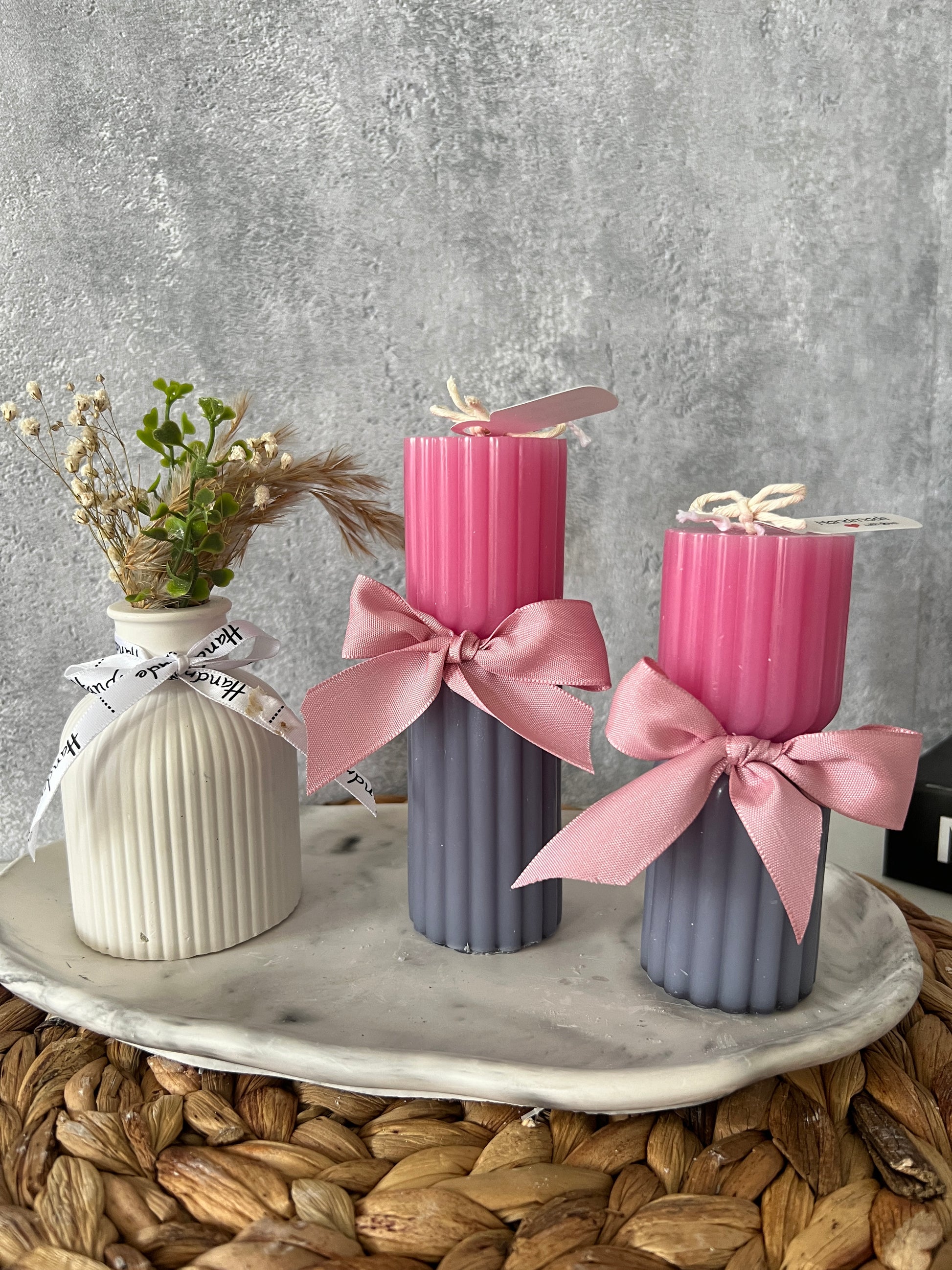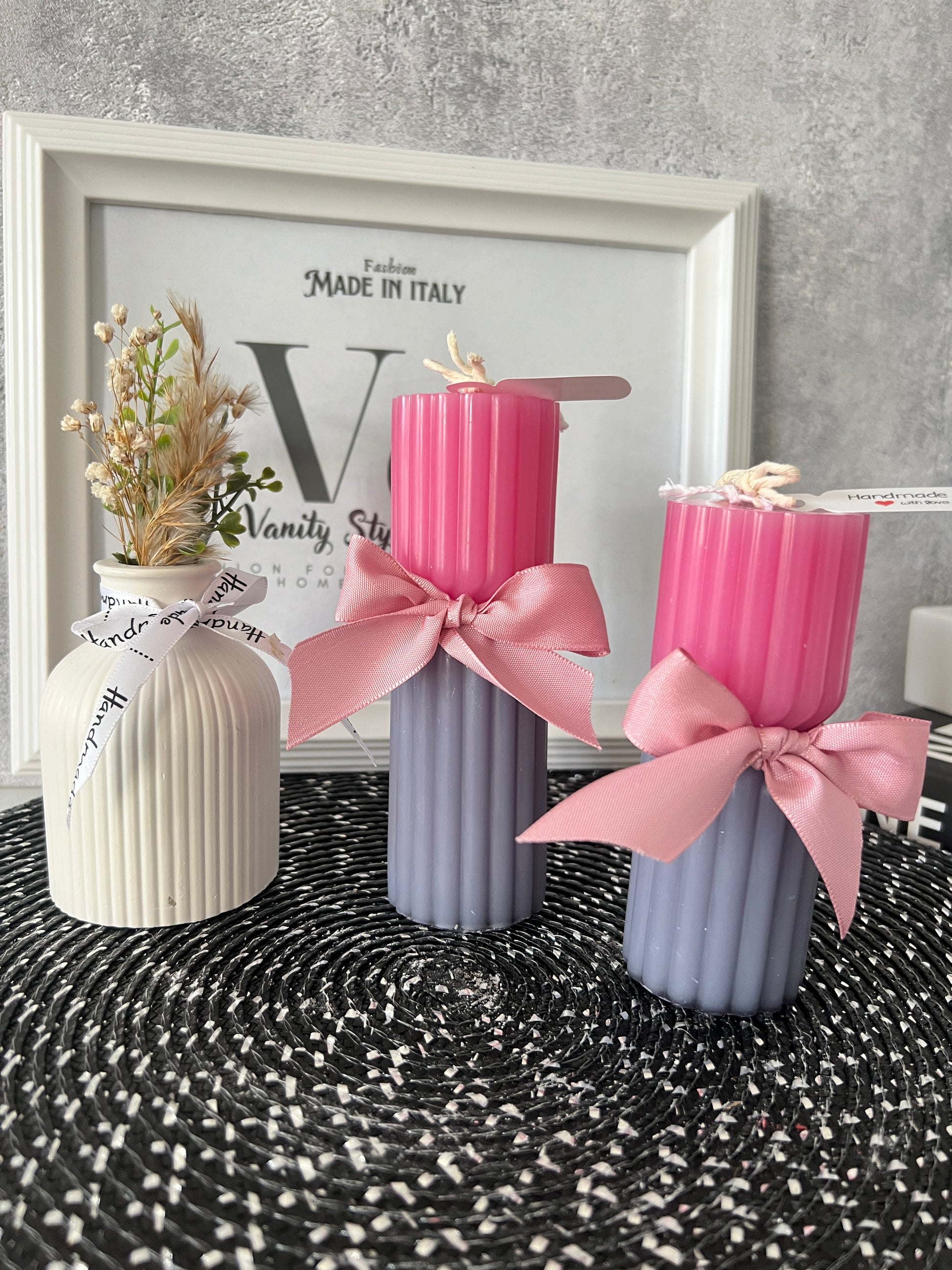 Dieses tolle 2er Säulenkerzen Set aus Rapswachs mit ein wenig Paraffin wurde in liebevoller Handarbeit gegossen.