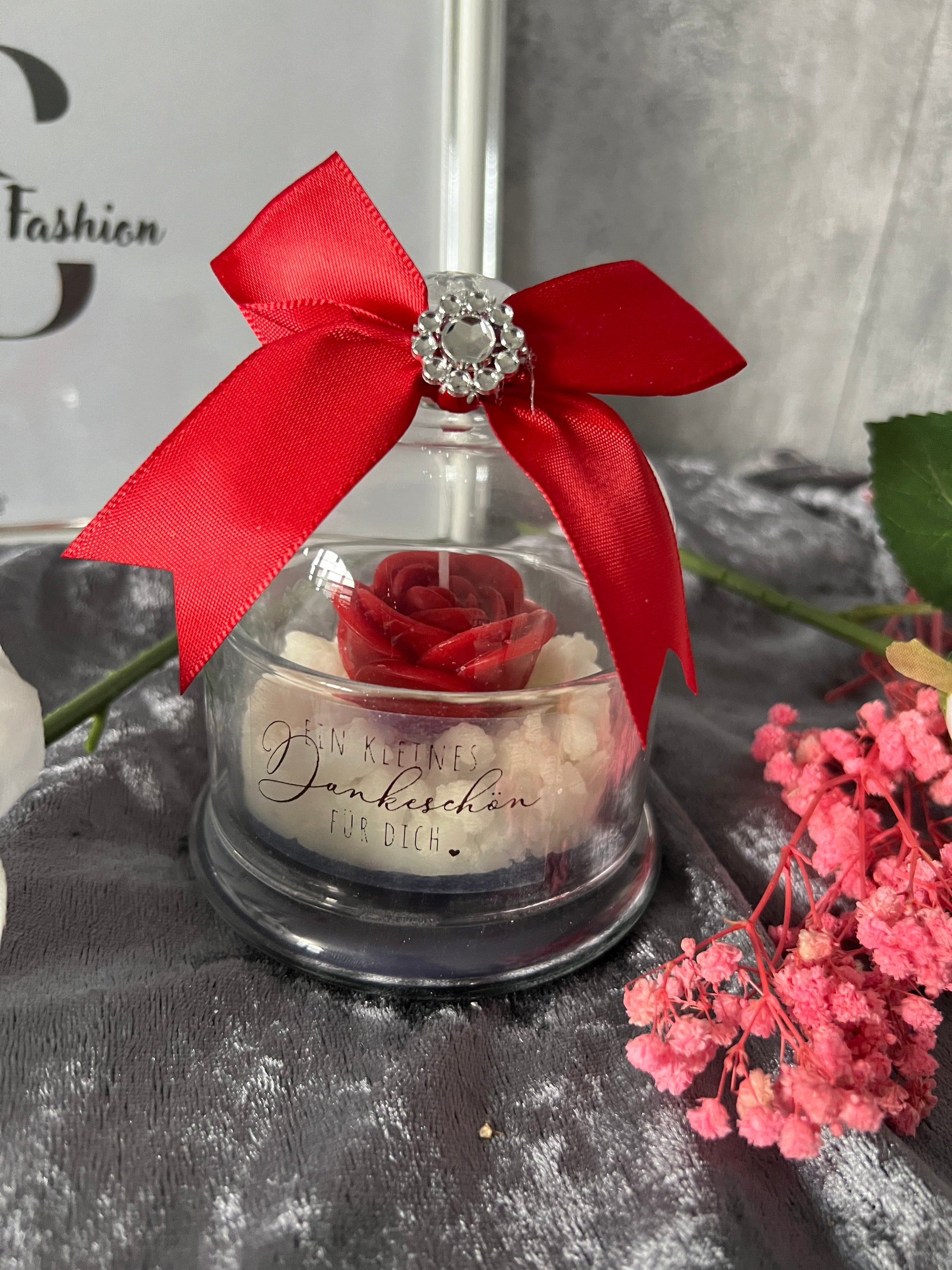 Kerze im Glockenglas mit personalisiertem Spruch