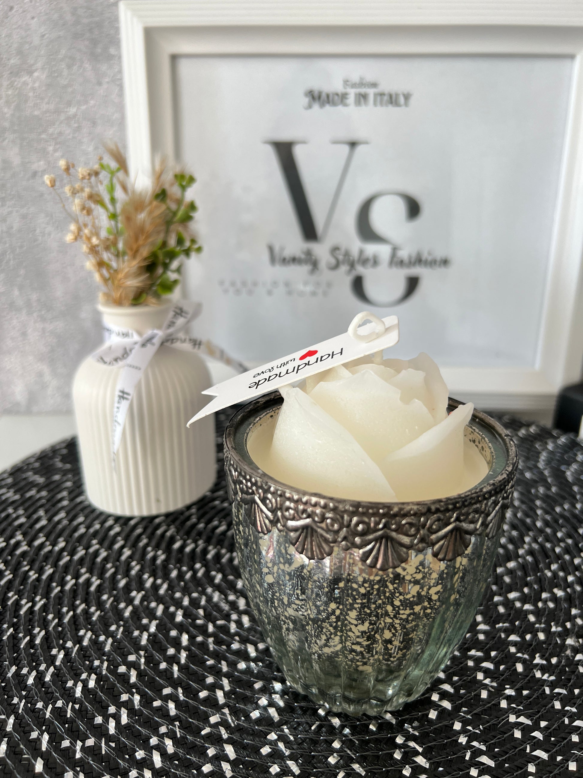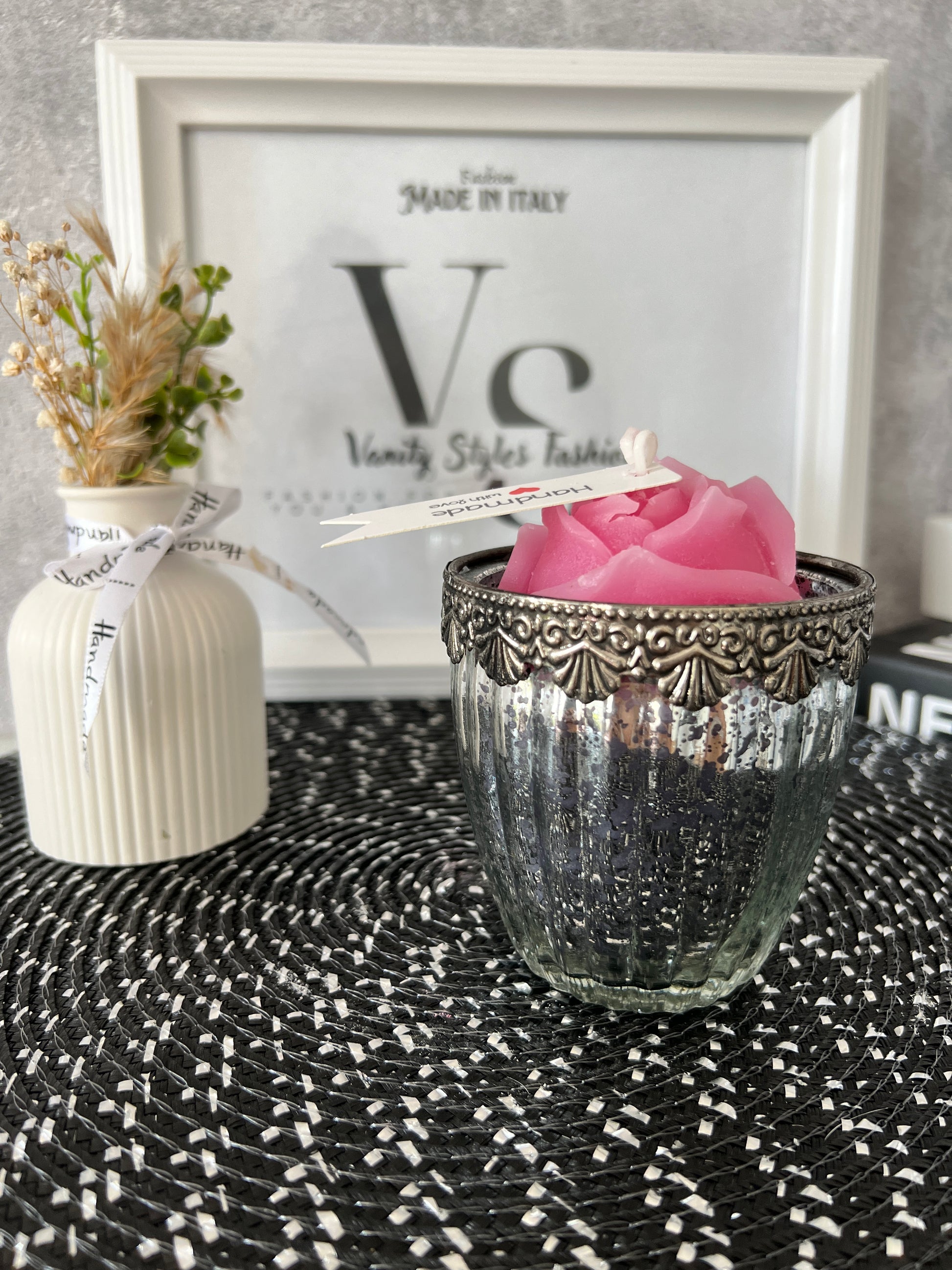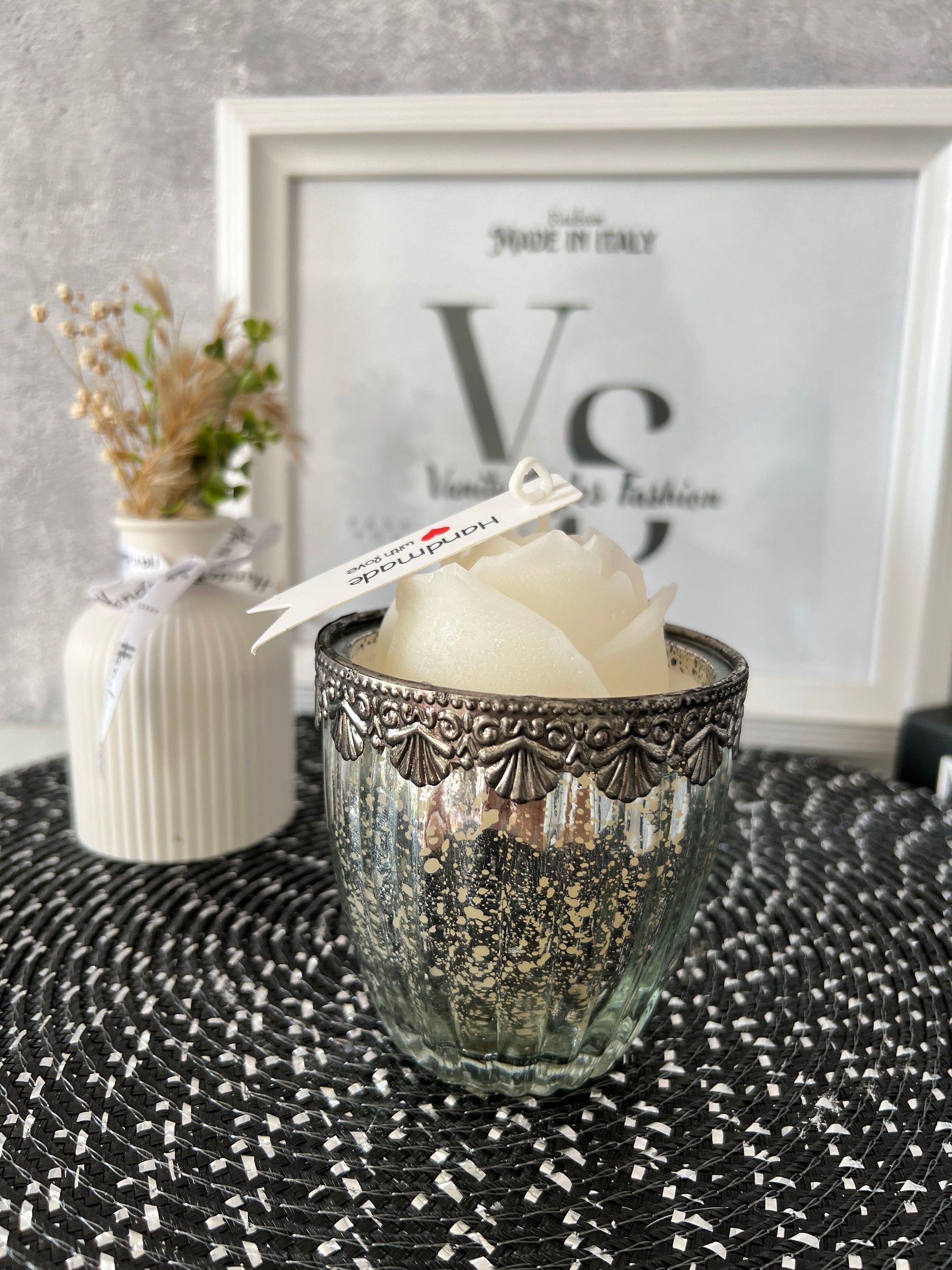 Wunderschöne Kerze im Antik Style Glas mit einer Rose.