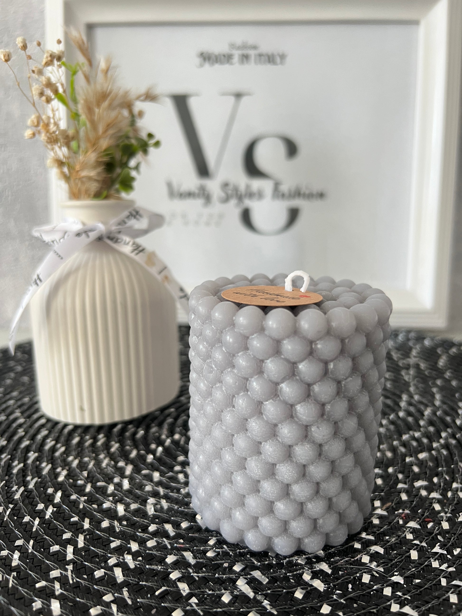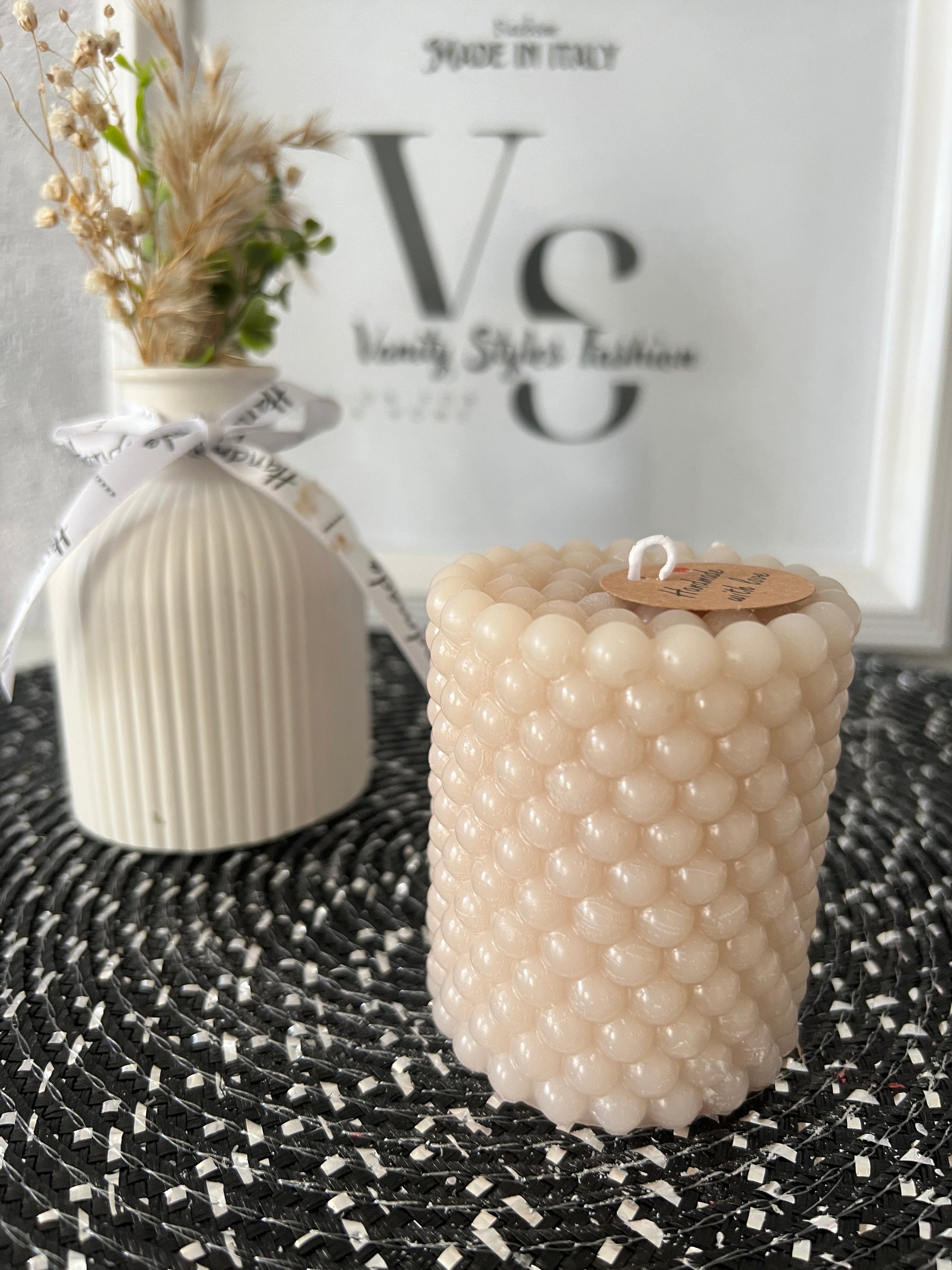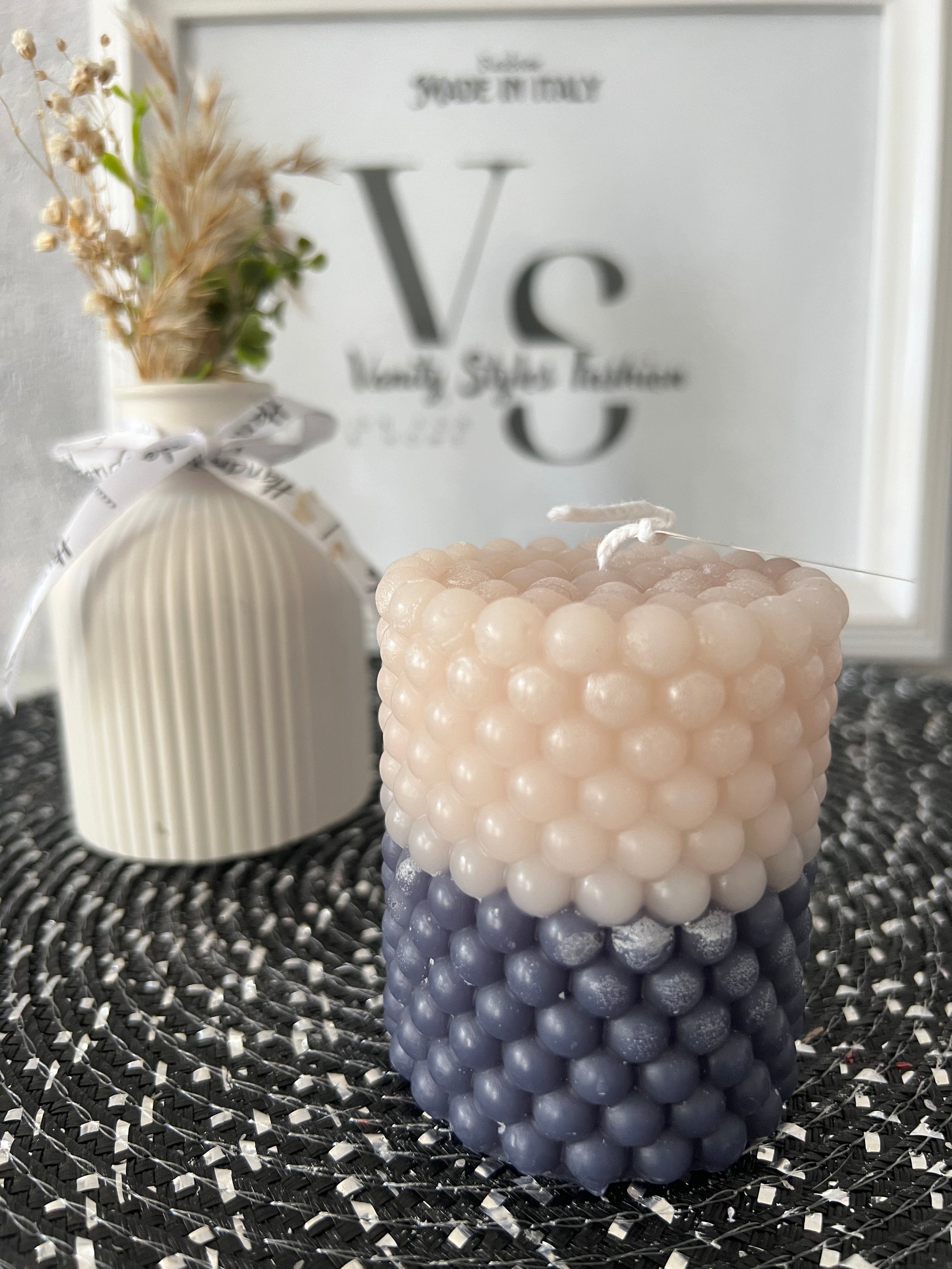 Runde Bubblee Kerze aus Rapswachs mit ein wenig Paraffin wurde in liebevoller Handarbeit gegossen.