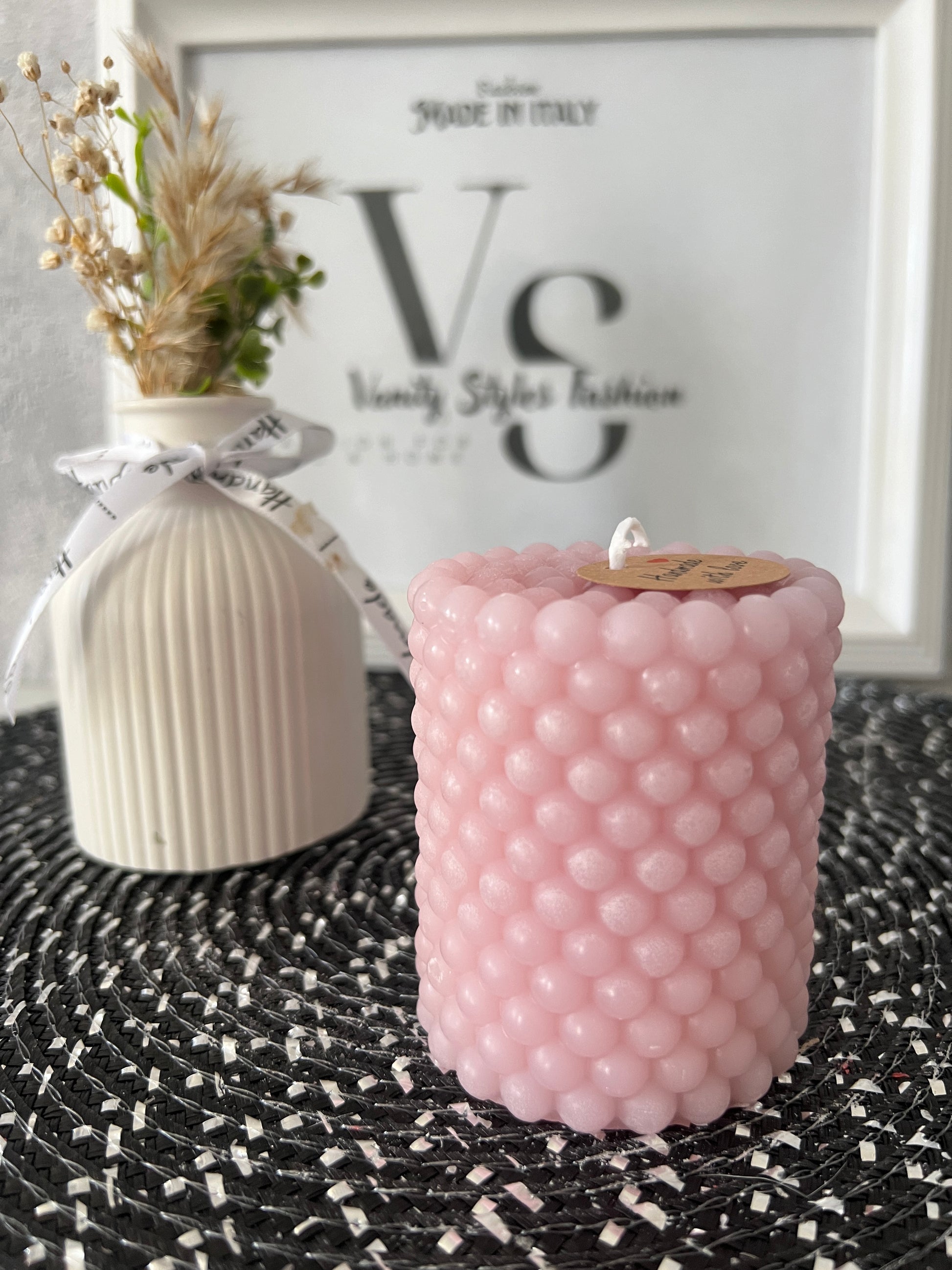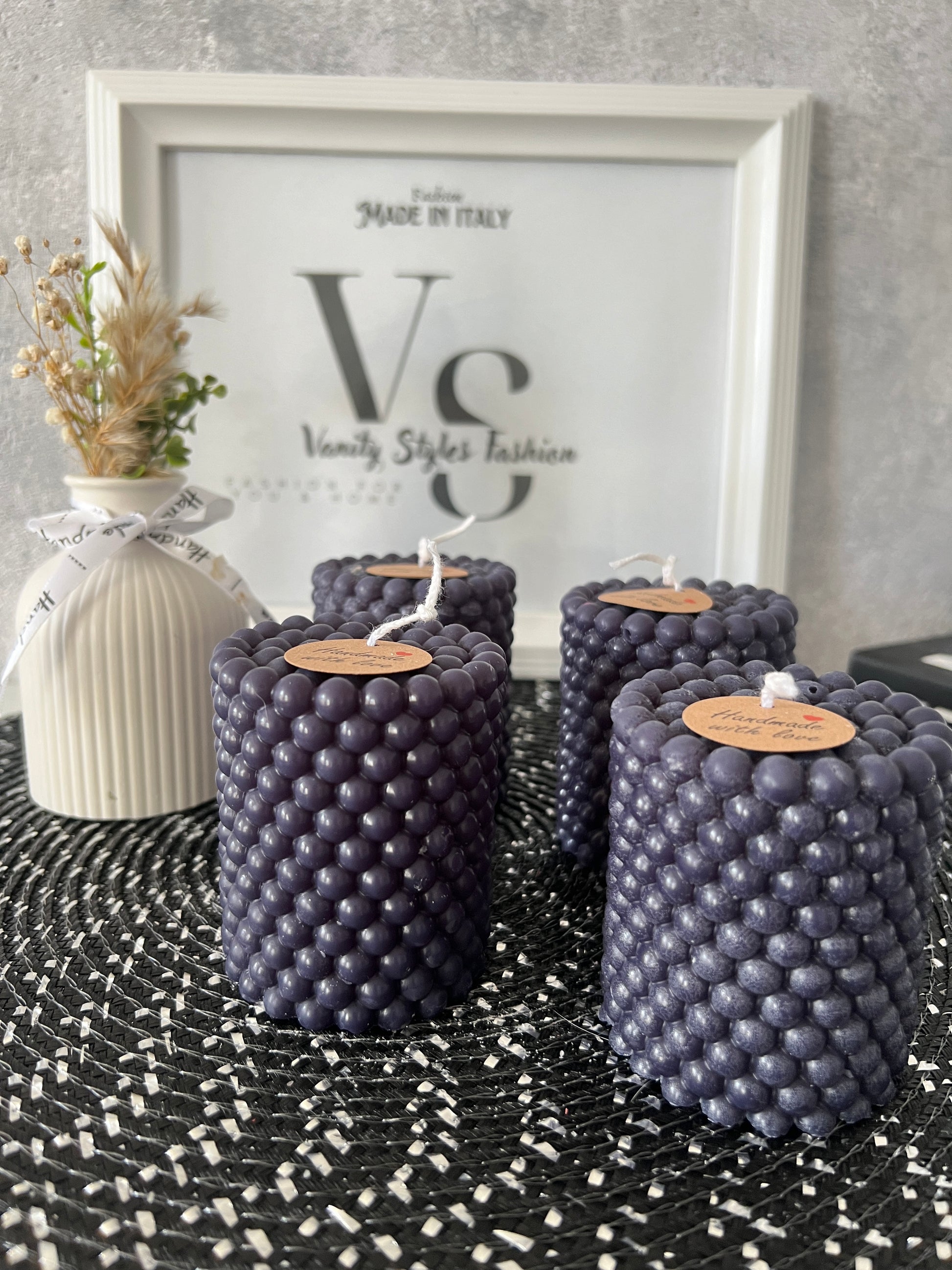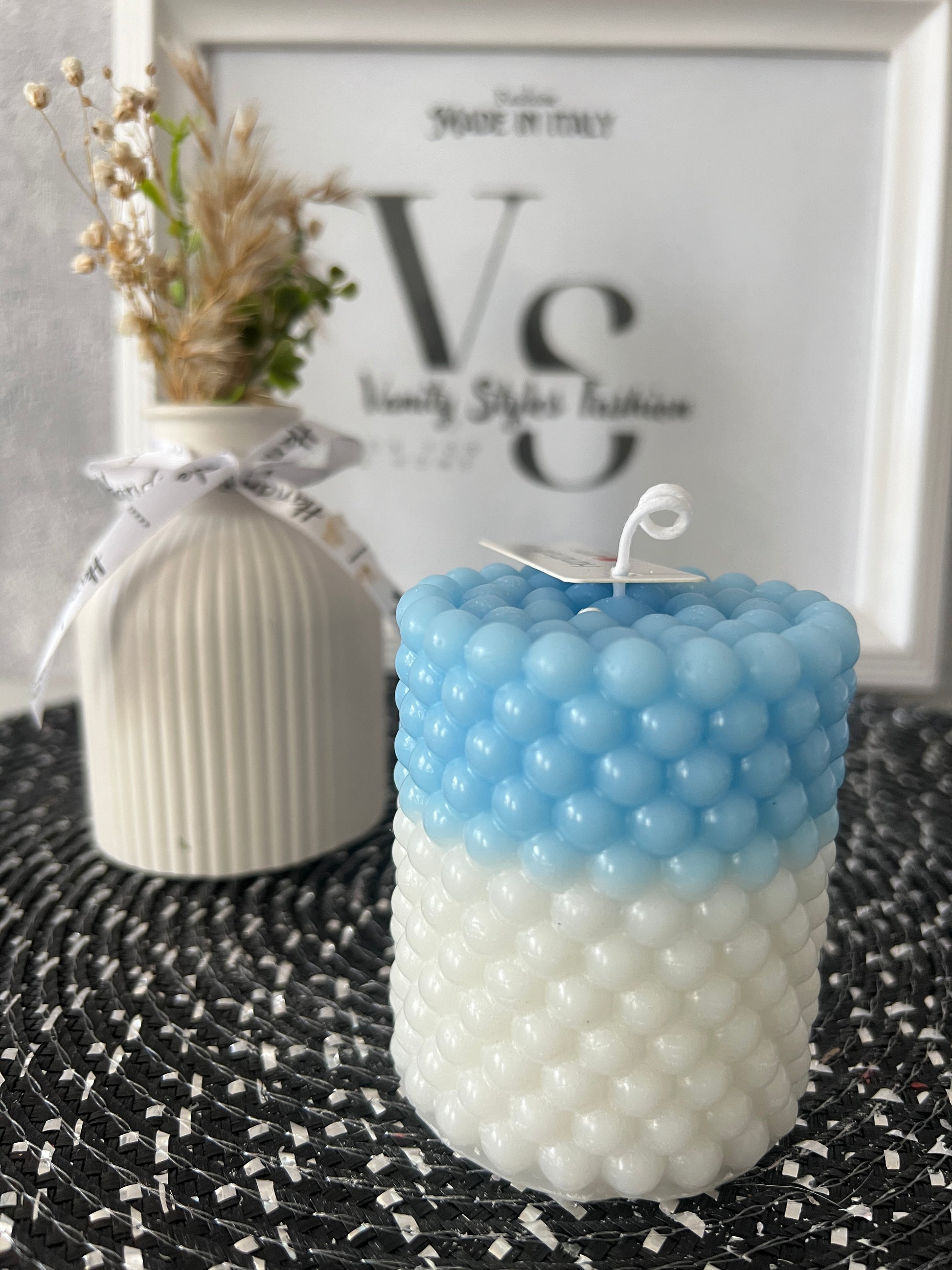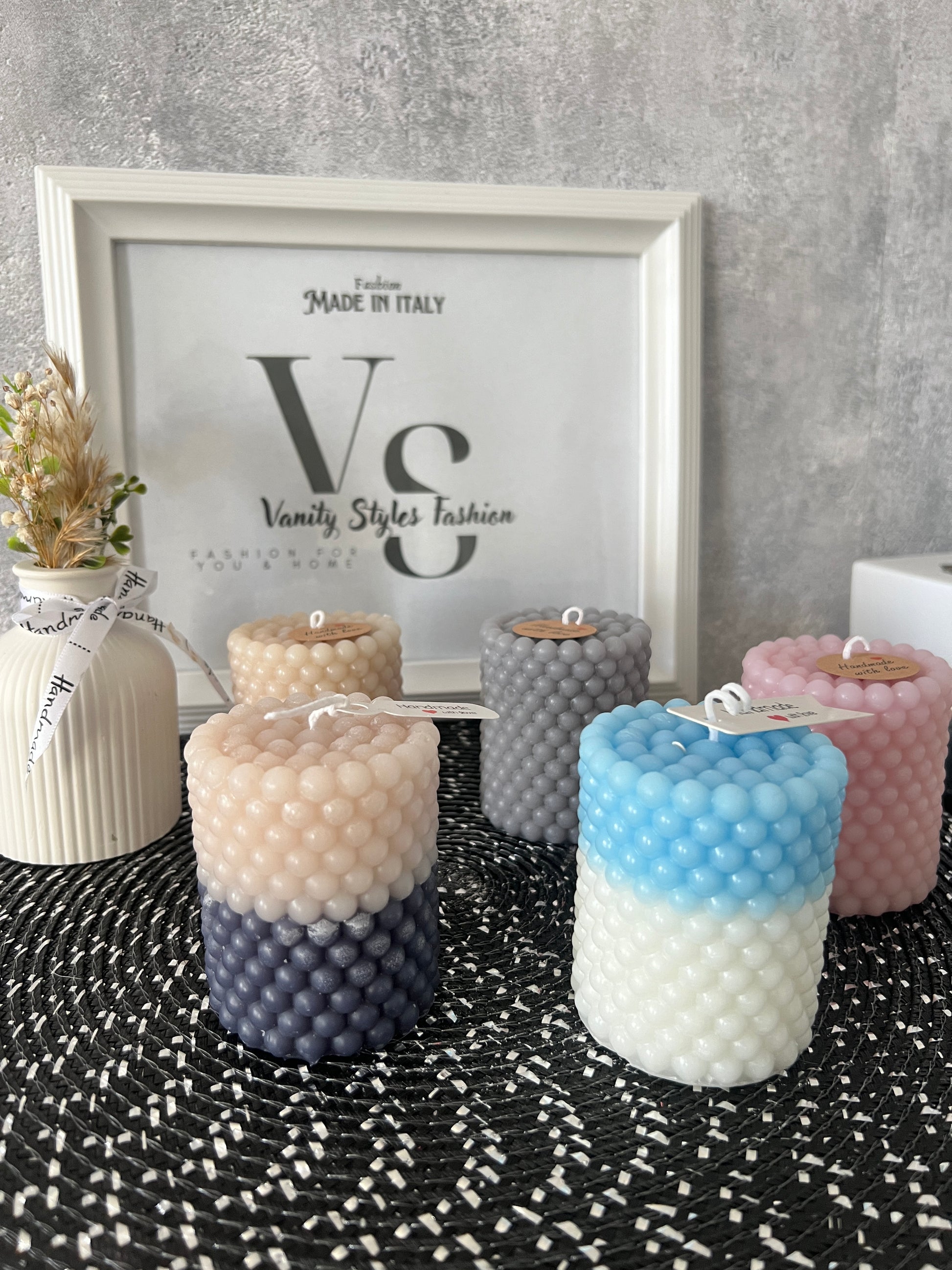 Runde Bubblee Kerze aus Rapswachs mit ein wenig Paraffin wurde in liebevoller Handarbeit gegossen.