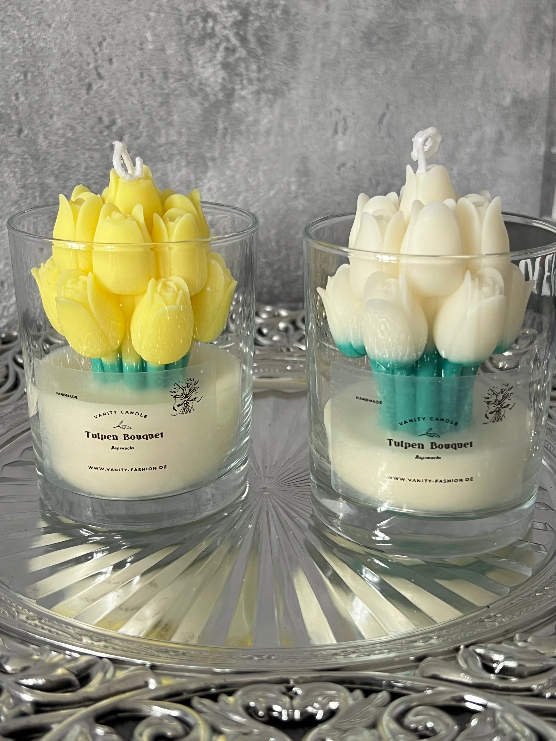 Kerze im Glas Tulpen Strauss . Frühlingsgefühle
