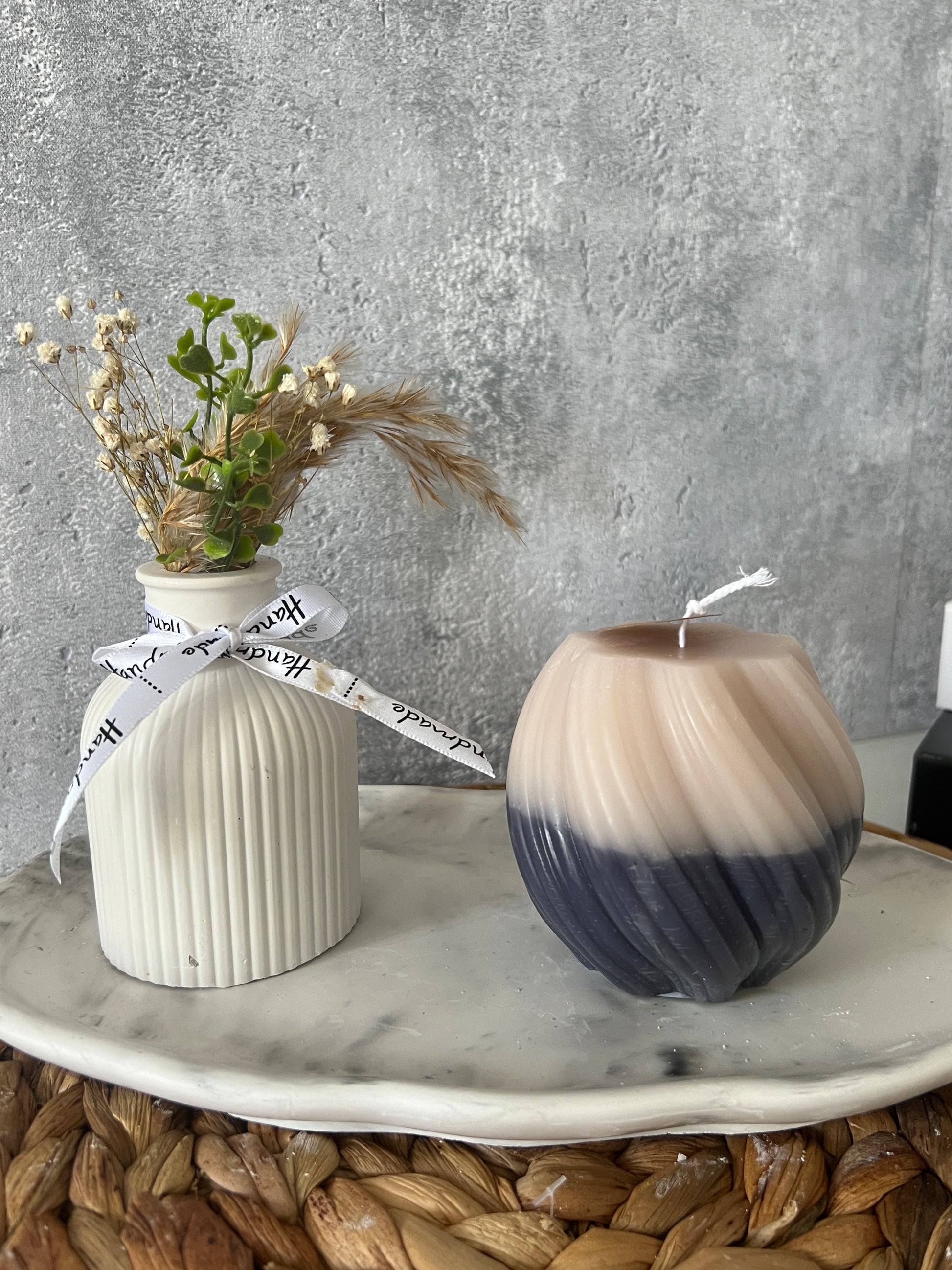 Dieses tolle Wellenkerze aus Rapswachs mit ein wenig Paraffin wurde in liebevoller Handarbeit gegossen.