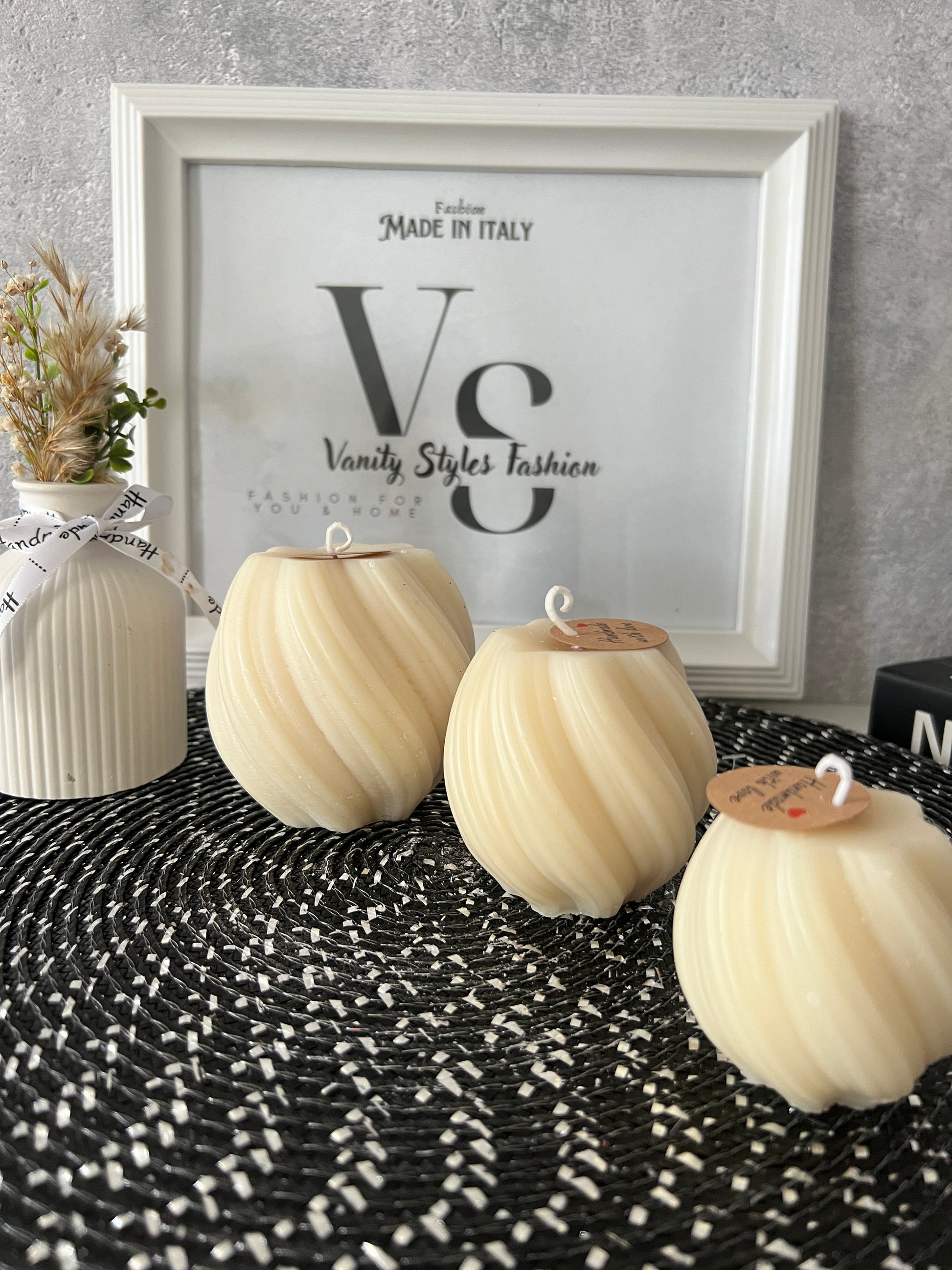 Dieses tolle Wellenkerze aus Rapswachs mit ein wenig Paraffin wurde in liebevoller Handarbeit gegossen. Als 3er Set in S - M - L