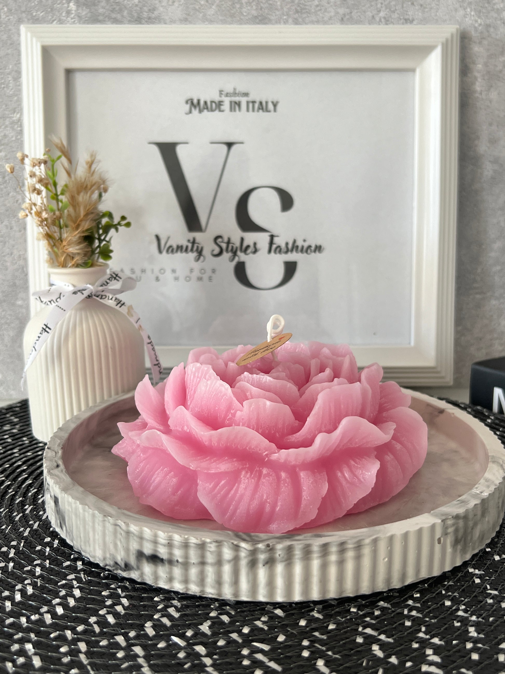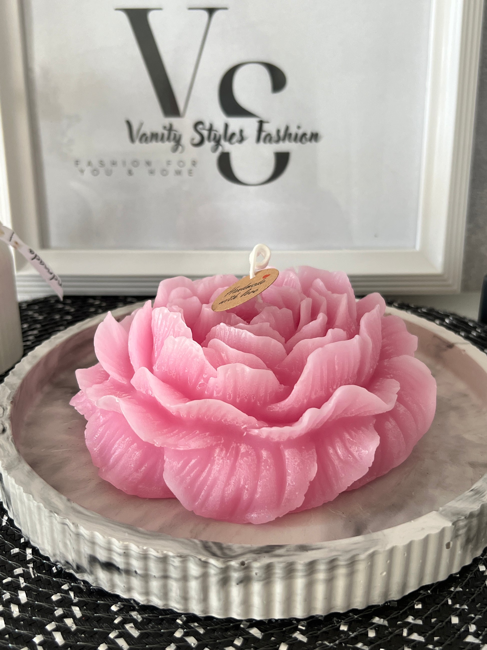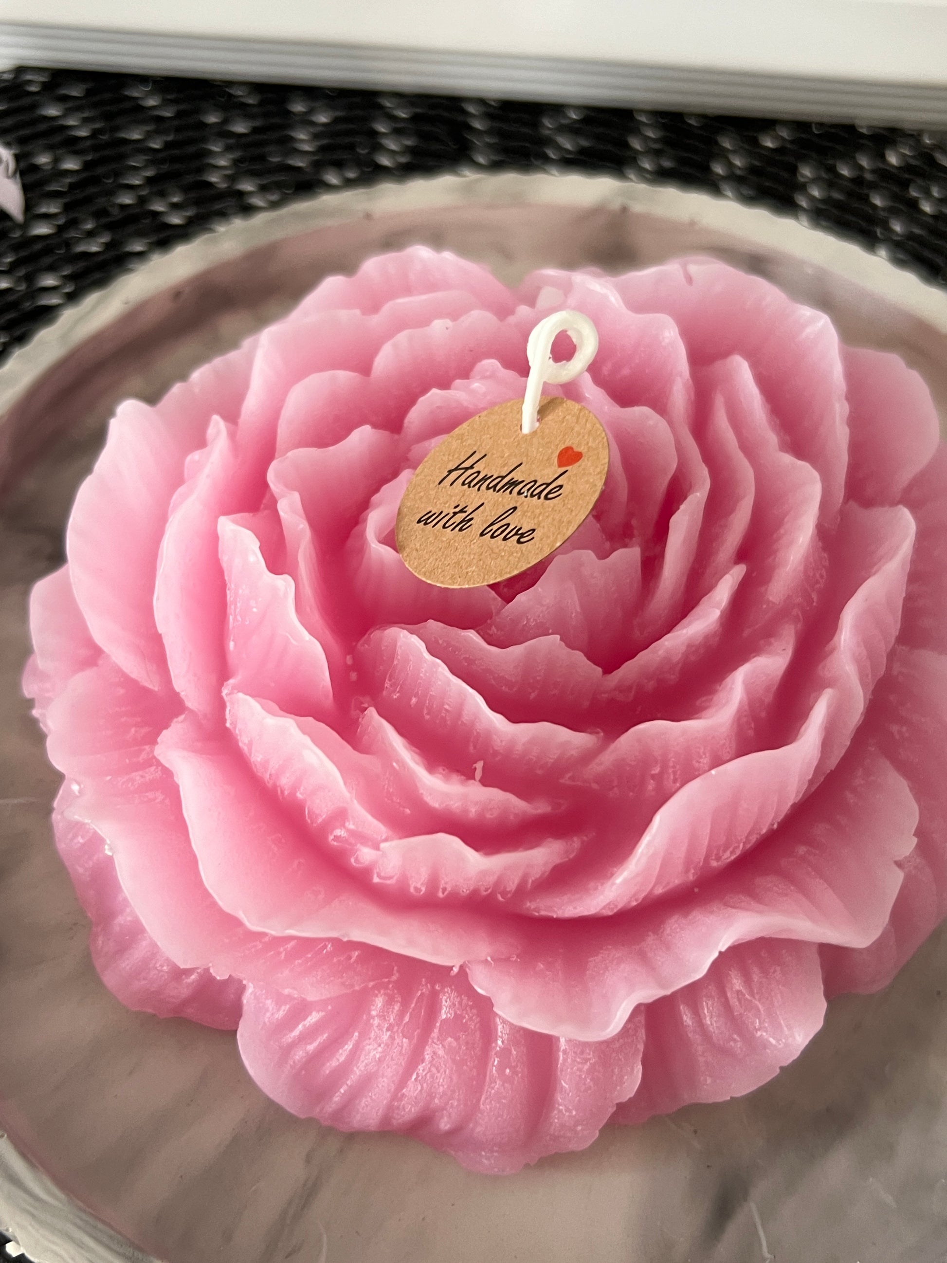 Diese riesige Pfingsrose aus Rapswachs mit ein wenig Paraffin wurde in liebevoller Handarbeit gegossen.